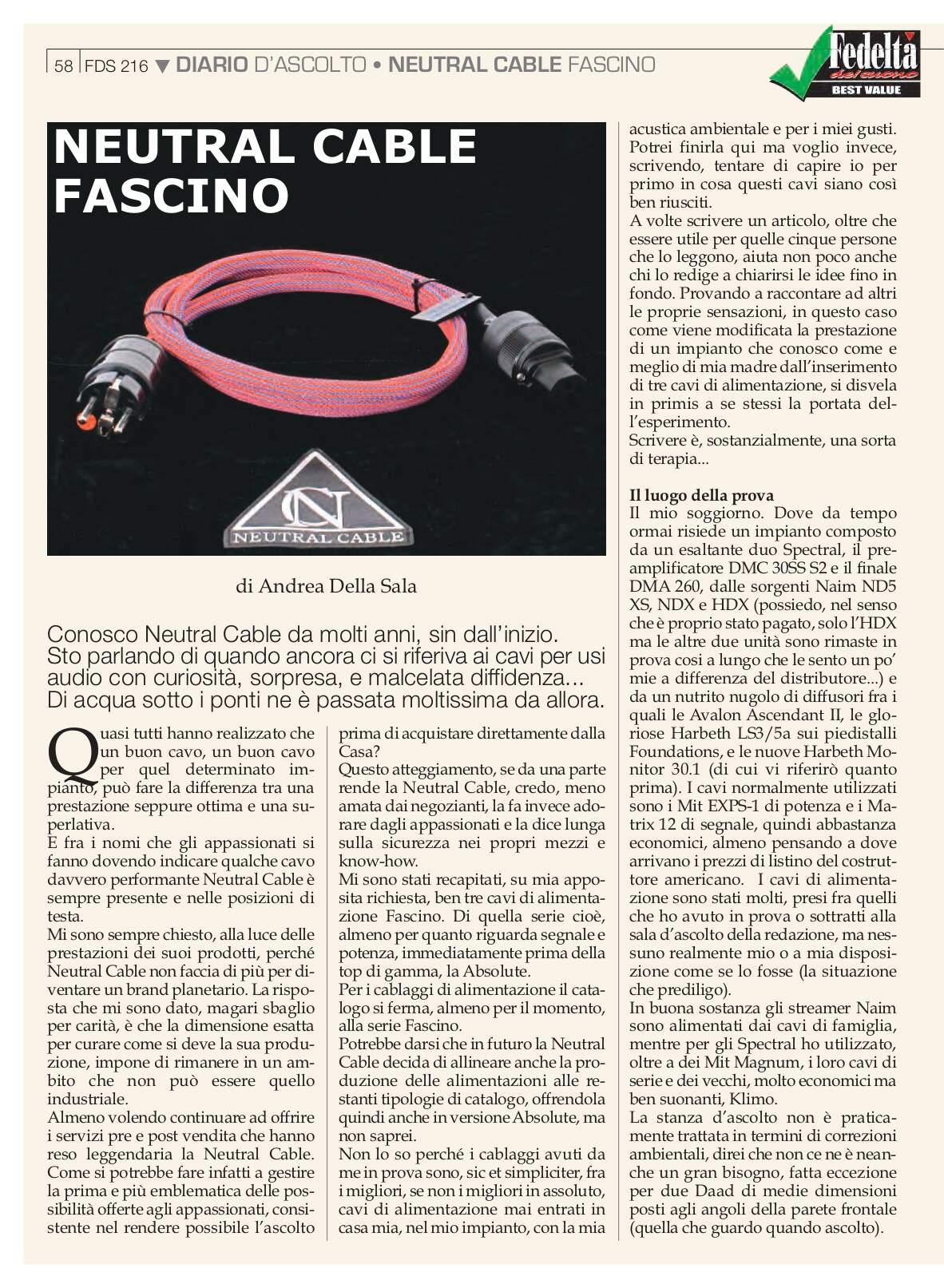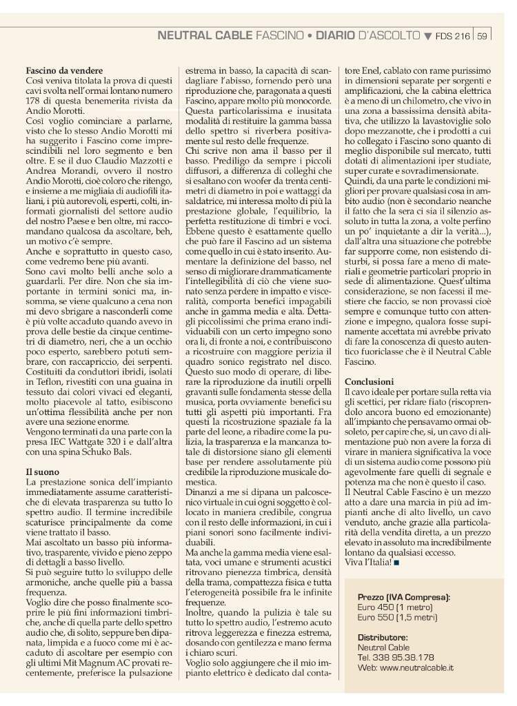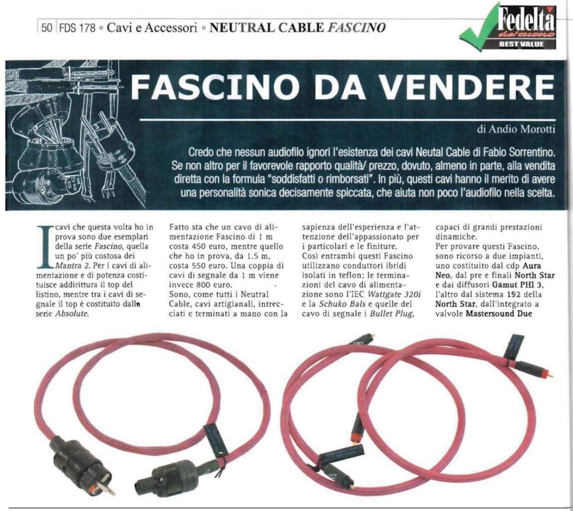 Cerco cavi potenza Neutral Cable Fascino. Offro in permuta cavi di potenza R&C Audio Engineering modello Dorian.