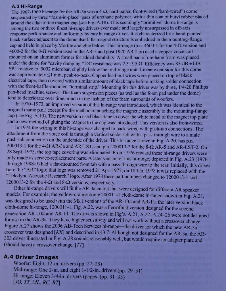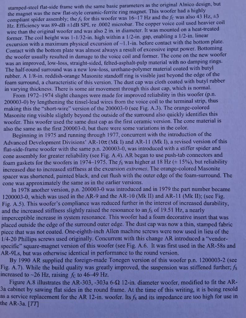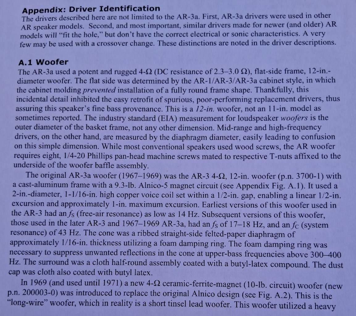 In occasione di questo traguardo  ed ultima mia "fatica", introduco ancora delle interessanti integrazioni sulle AR3a, in particolare sui woofer di queste e dei derivati...