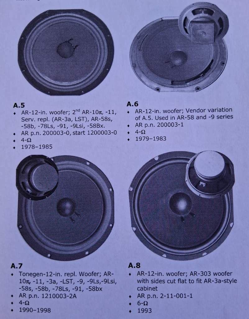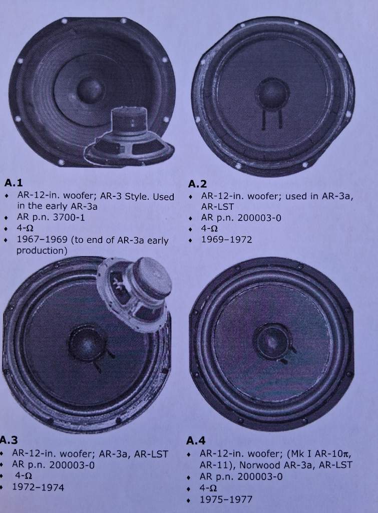 Mancava un esemplare di raro woofer transizionale delle AR3a, durante il passaggio da quelli con magneti in AlNiCo a magnete ceramico...