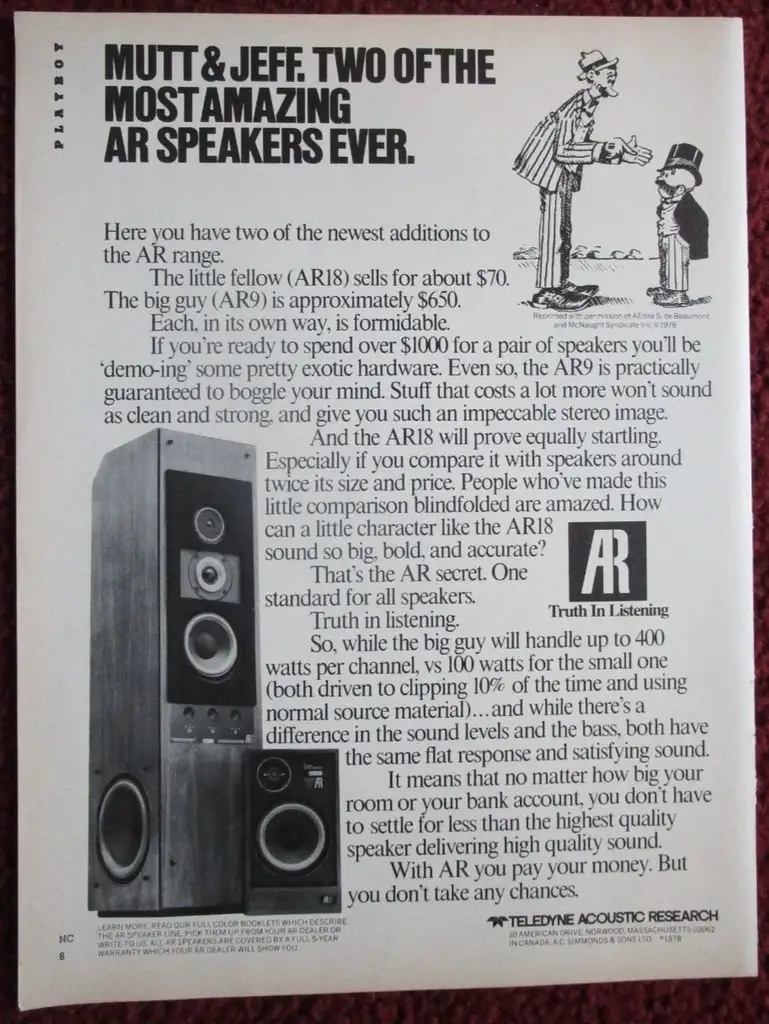 Le AR78LS, per come  suonano, da ricordo, essendo usate come mobile porta elettroniche da tempo, sono molto più presenti in gamma media rispetto alle AR91 con regolazione dei midrange flat! Di conseguenza il basso è  arretrato e non protagonista come uso nella produzione Acoustic Research precedente.
