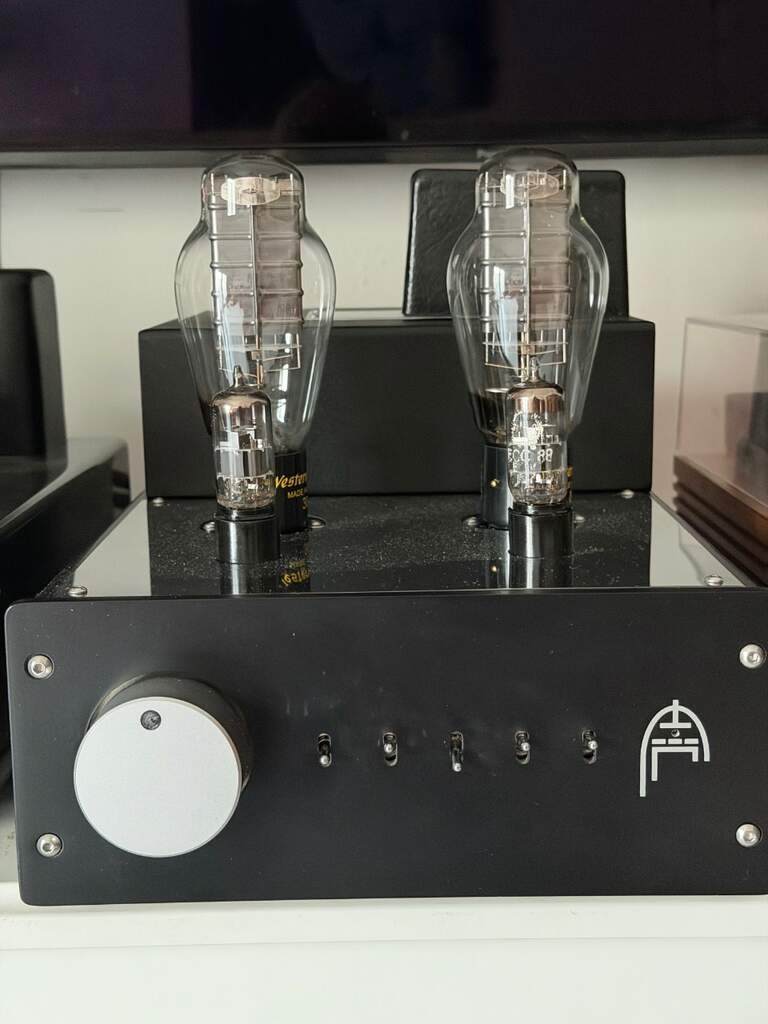 ...buonasera a tutti ragazzi...ho letto il 3d e ho deciso di partecipare.....vi presento il mio "cinesino"......Lm 219Ia...questo ampli nonostante la sua provenienza e la sua costruzione, usa la controreazione, anche se controllata e regolabile...🤭.....dopo aver posseduto i maggiori marchi sui valvolari, vedi Viva Audio Aurora, Audio Research 75 Reference, Mastersound, New Audio Frontiers, Tektron ed altri che non ricordo mi sta regalando emozioni che da tempo non provavo, rivalvolato con 845 Psvane W.E. Replica, 300 B W.E., 310A Svetlana ed ecc83 Tfk Smooth Plate, pilota delle Pmc Fact 12 Signature da 84 db a 8 ohmm...mi viene da sorridere quando sento parlare della "qualità" del primo mezzo watt con casse ad alta efficienza......cordialmente Andrea