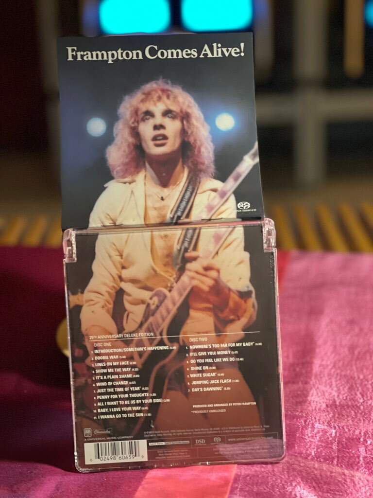 Moderatori zagor333 Inviato 30 Dicembre 2025 Moderatori Condividi Inviato 30 Dicembre 2025 E dopo cena un “digestivo” di eccezione 😊: Peter Frampton e il suo leggendario doppio album live: “Frampton Comes Alive!”. Doppio SACD con remaster publicato nel 2003 per i 25 anni di questo album, molto buona la qualità audio, avrei preferito però un più basso tasso di compressione dinamica, ma pazienza, mi accontento. Bellissimo. Buonissimi ascolti Roberto 1 Link al commento https://melius.club/topic/143-dellmt10-del-vinile-del-digitale-e-sul-futuro-della-riproduzione-musicale-domestica/page/49/#findComment-1664261 Condividi su altri siti Altre opzioni di condivisione...