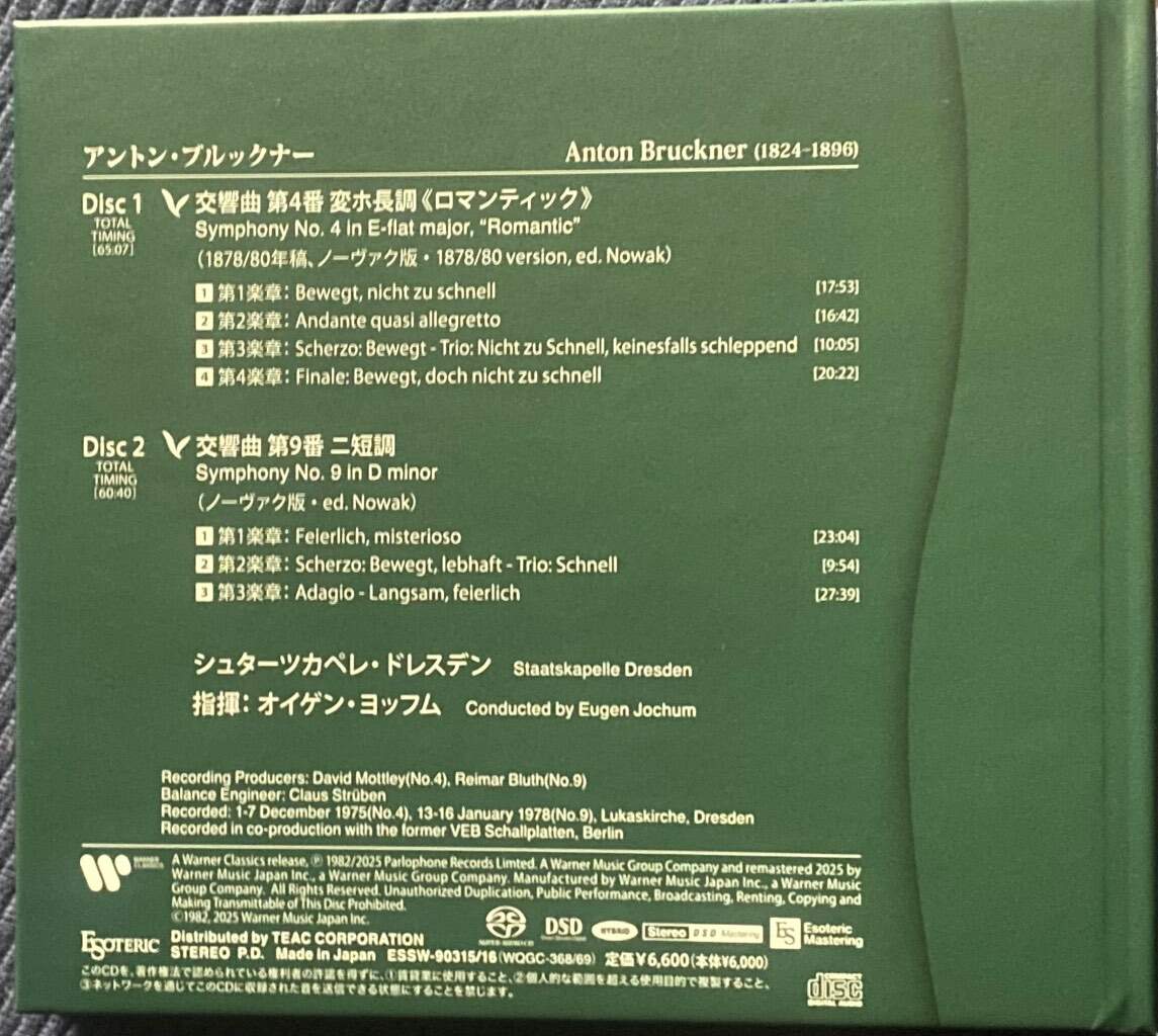 Amministratori vignotra Inviato 3 Gennaio Autore Amministratori Condividi Inviato 3 Gennaio Bruckner non è un compositore “facile “ tra quelli dell’Ottocento e ogni sua sinfonia va seguita con attenzione, alcune richiedono anche un certo impegno ma sono tutte meravigliose. Oggi vi propongo questo superlativo doppio della Esoteric contenente la 4^ e la 9^. Registrate rispettivamente a dicembre 75 e gennaio 78, dirette da Eugen Jochum con l’orchestra della Staatskapelle di Dresda. Artisticamente meravigliose e tecnicamente….ho finito gli aggettivi superlativi e non so come chiamarli se non miracoli. Doppio da avere assolutamente nella propria collezione discografica. 1 Link al commento https://melius.club/topic/143-dellmt10-del-vinile-del-digitale-e-sul-futuro-della-riproduzione-musicale-domestica/page/49/#findComment-1666532 Condividi su altri siti Altre opzioni di condivisione...