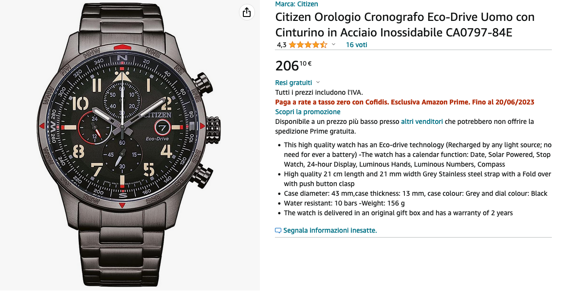 vizegraf Inviato 11 Giugno 2023 Inviato 11 Giugno 2023 22 minuti fa, captainsensible ha scritto: Citizen eco drive Tipo questo dici ? Non è male , quasi quasi. ...