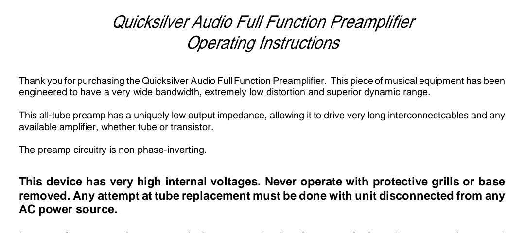 Moe Inviato 2 Luglio 2023 Autore Inviato 2 Luglio 2023 @TheoTks grazie per le dritte! Un po' per pigrizia volevo tenere fermo il pre con tutte le sorgenti già connesse ☺️ magari mi faccio passare la voglia...allego l'inizio del manuale, parla di low output impedance 😅 il Quicksilver attualmente lo utilizzo con un Dynaco St70 e non dico che è perfetto perché la perfezione non esiste ☺️