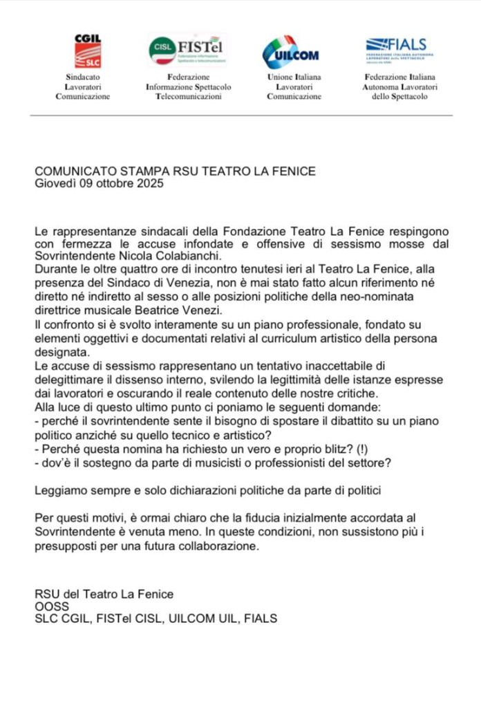max Inviato 9 Ottobre Inviato 9 Ottobre Altri cocci: https://www.veneziatoday.it/attualita/isovrintendente-fenice-venezi-criticata-perche-donna.html