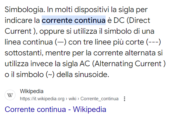 Leggendo in rete, vedo che DC sta per corrente continua come quella della batteria auto,