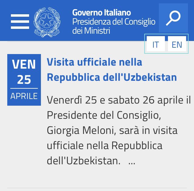 maurodg65 Inviato 20 Aprile Inviato 20 Aprile 1 ora fa, lello64 ha scritto: la risposta dattela tu se questi sono cialtroni la colpa non è di @CarloCa e staccati una mezzora da questo forum... fatti un piacere... . https://www.governo.it/it/agenda/2025-04-25t000000-2025-04-26t000000/visita-ufficiale-nella-repubblica-delluzbekistan/28256 Si vede che proprio non ci arrivate, troppo difficile…vabbè dai: https://www.governo.it/it/agenda?t_p=h