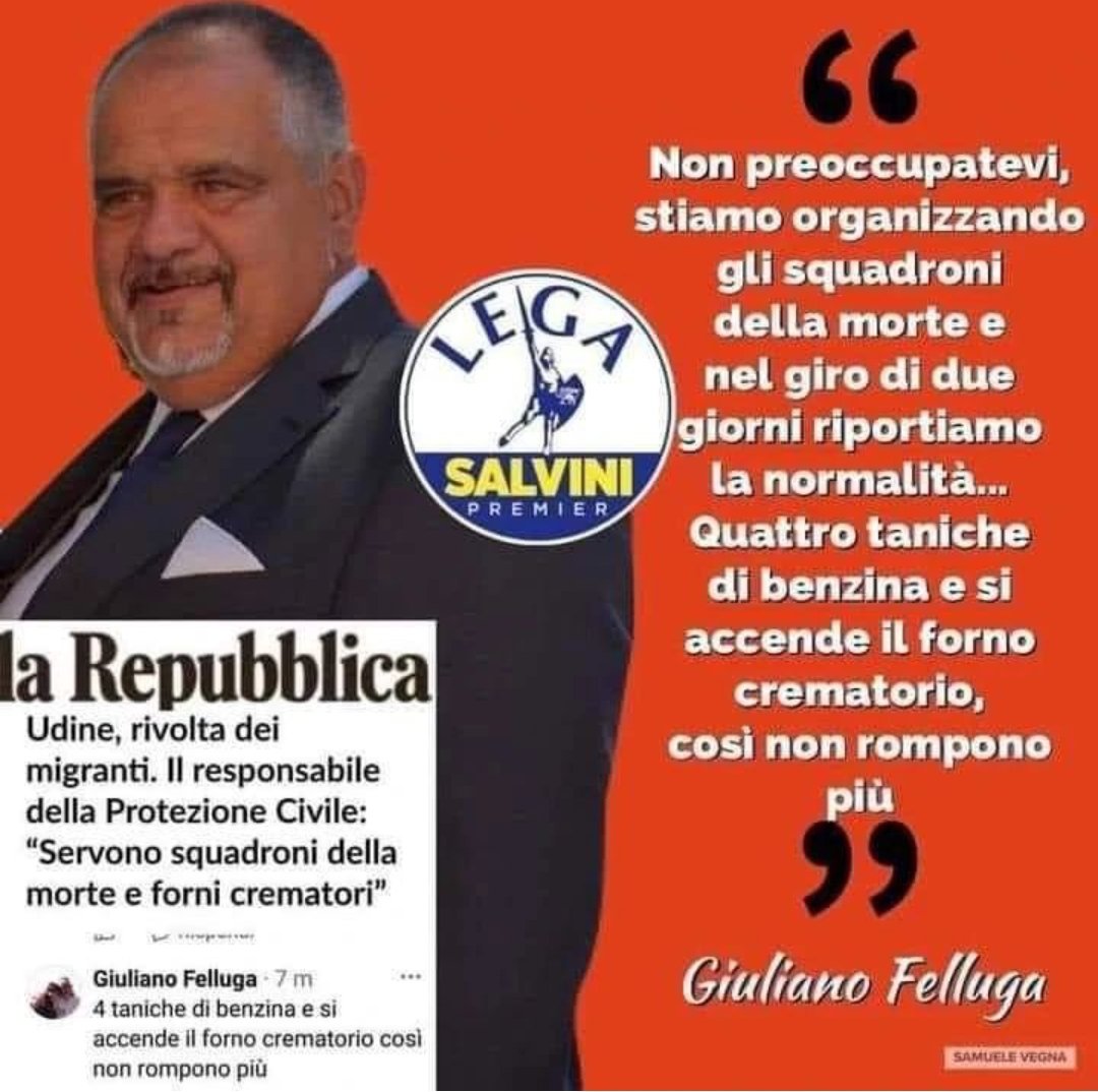 ferrocsm Inviato 10 Dicembre 2024 Inviato 10 Dicembre 2024 35 minuti fa, Xabaras ha scritto: Ecco, ma scrivere una cosa del genere non è illegale? Chiedo eh. Sarà anche illegale e infatti credo sia stato cacciato almeno per salvare la faccia, ma quando ha esternato tale perla era ancora a capo della protezione civile del suo paese, lo riscrivo in maiuscolo perchè dovrebbe far rabbrividire "PROTEZIONE CIVILE" ma ci rendiamo conto? Questo è uno di quelli che ha votato la compagine che ci governa e sovrintende alla "PROTEZIONE CIVILE" di nuovo per rimarcarlo.
