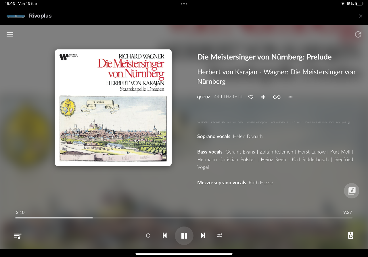 SimoTocca Inviato 13 Febbraio Autore Condividi Inviato 13 Febbraio Segnalo all’amico Roberto, @mozarteum, che si era giustamente lamentato del fatto che su Qobuz non fosse disponibile la mitica interpretazione dei Maestri Cantori di Norimberga di Karajan… Come avevo preannunciato la Warner stava rimasterizzando tutto il catalogo del maestro austriaco … Ora i Cantori sono disponibili nuovamente anche in streaming… rimasterizzati e hanno un bel suono migliorato (anche se per ora sono disponibili solo in versione 16/44…. ma vedrai che a breve saranno disponibili anche in HiRes…) Link al commento https://melius.club/topic/234-le-nuove-uscite-di-classica-e-di-lirica-in-hires/page/60/#findComment-1697338 Condividi su altri siti Altre opzioni di condivisione...