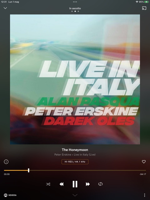 silvanik Inviato 1 Maggio 2023 Condividi Inviato 1 Maggio 2023 @Gaetanoalberto In attesa di riuscire ad acquistare il cd "Live in Italy" di Peter Erskine Trio me lo sto ascoltando proprio ora in streaming da Tidal.....bellissimo e che qualità di incisione!, ho il trio in casa, le JBL rendono il tutto moooolto live, spettacolo per le orecchie. Grazie ancora, mi ha fatto scoprire altri fenomenali artisti. L'ignoranza (la mia) è più grande di quanto pensassi.......... Link al commento https://melius.club/topic/24-cosa-state-ascoltando/page/1077/#findComment-820192 Condividi su altri siti Altre opzioni di condivisione...