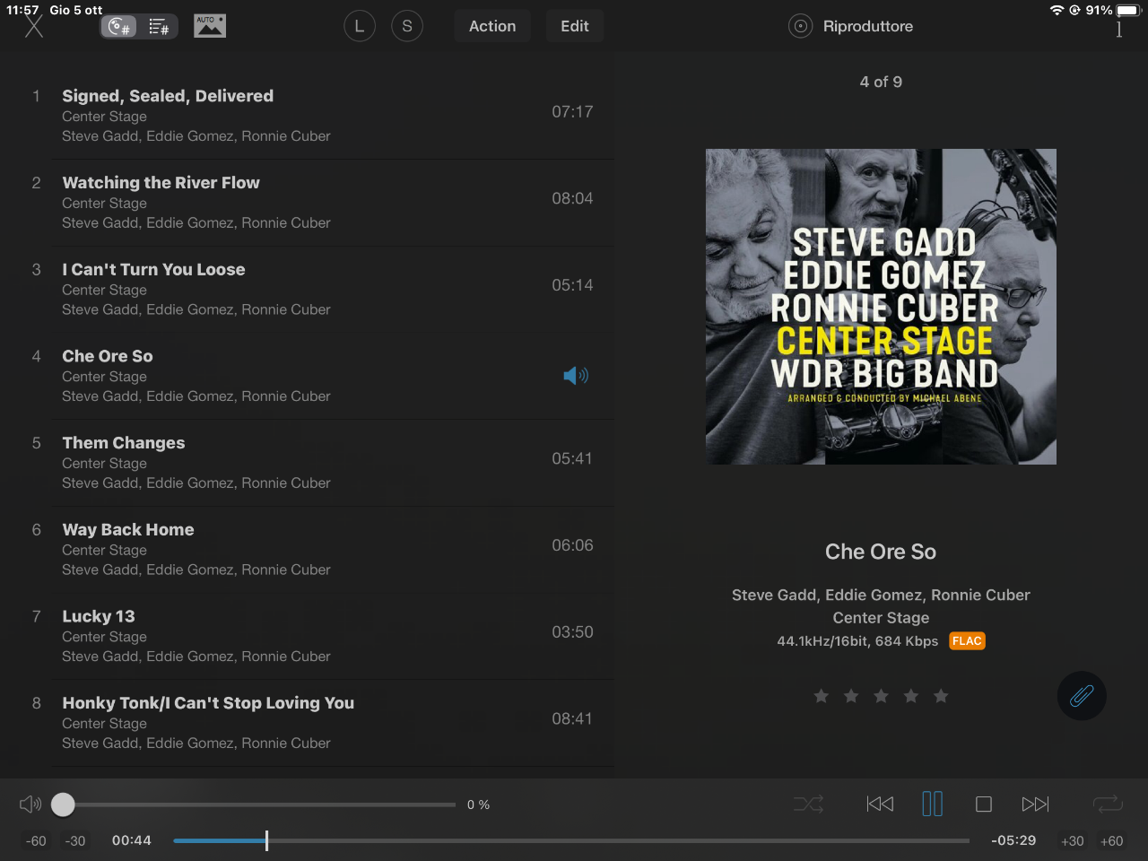 claravox Inviato 5 Ottobre 2023 Condividi Inviato 5 Ottobre 2023 Steve Gadd/Eddie Gomez/Ronnie Cuber/The WDR Big Band: Center Stage (2022) Tre mostri sacri, un lavoro divertente, bluesy, post bop con un tocco di funk dimostrano che l'età non è una barriera alla vitalità creativa. Perfetta l’interazione tra i solisti e la sezione fiati della WDR Big Band. Bella lettura della ballata di di Pino Daniele "Che Ore So", dove viene alla luce il sensibile lavoro di baritono di Cuber e il sempre puntuale basso di Gomez. Incredibile la tecnica e l’energia che sprigiona nei suoi assoli Steve Gadd! Registrazione molto buona. Acquisto consigliatissimo. Link al commento https://melius.club/topic/24-cosa-state-ascoltando/page/1210/#findComment-977576 Condividi su altri siti Altre opzioni di condivisione...