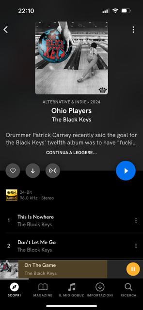 Questo è un messaggio popolare. Gaetanoalberto Inviato 8 Aprile 2024 Questo è un messaggio popolare. Condividi Inviato 8 Aprile 2024 The Black Keys - Ohio Players Veramente piacevole, un buon incrocio tra voci, melodie originali, grinta, groove, ritmo e qualche gustoso passaggio tra note graffianti e basse. 5 1 Link al commento https://melius.club/topic/24-cosa-state-ascoltando/page/1443/#findComment-1166250 Condividi su altri siti Altre opzioni di condivisione...
