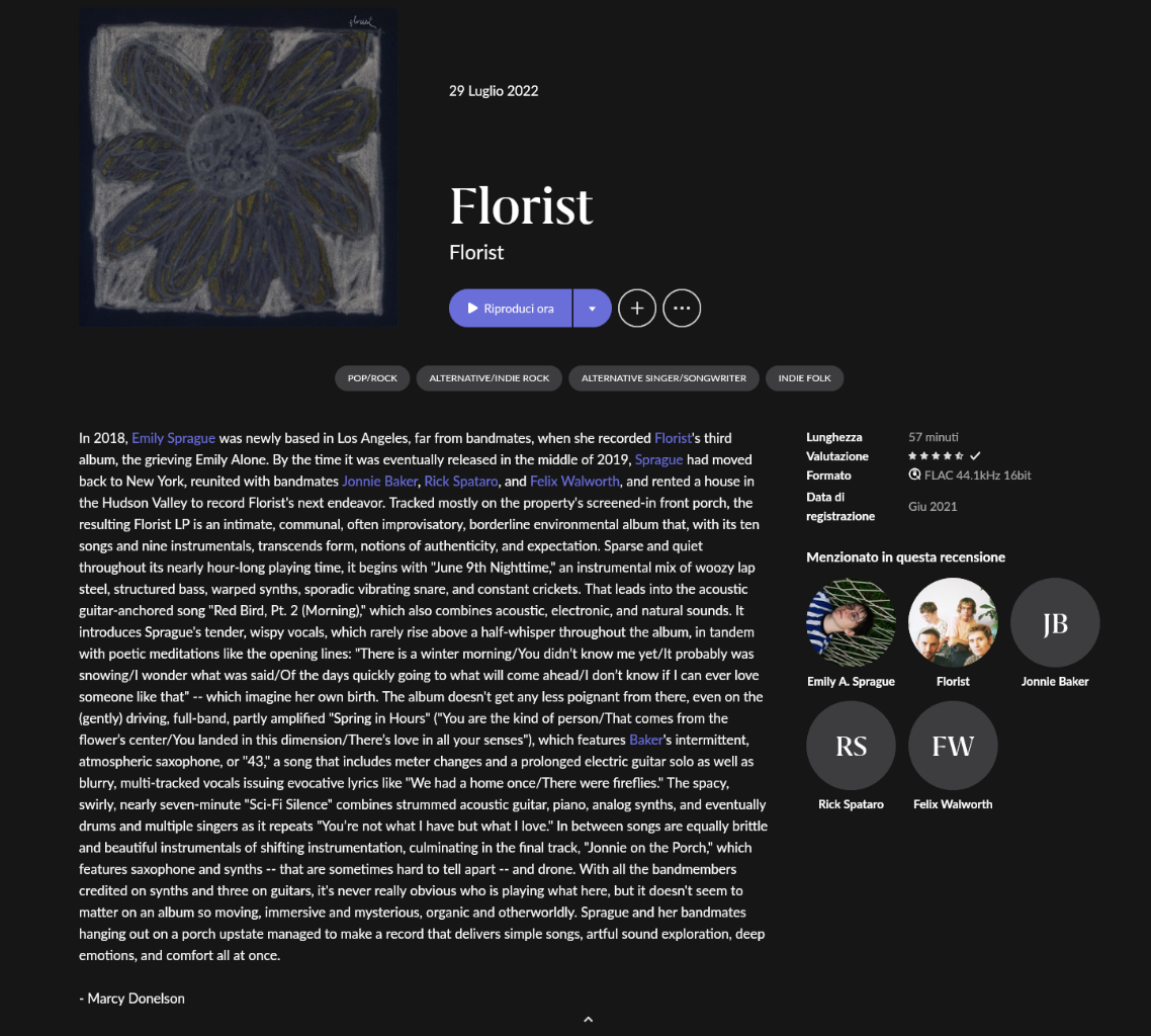 ediate Inviato 25 Ottobre 2022 Condividi Inviato 25 Ottobre 2022 @giorgiocana82 Di Natalie Merchant ti consiglio lo stupendo "Motherland"; anche i suoi dischi con i "10,000 Maniacs" sono notevolissimi. La sua famiglia è di origine siciliana, il cognome era "Mercatanti". 1 Link al commento https://melius.club/topic/24-cosa-state-ascoltando/page/838/#findComment-623671 Condividi su altri siti Altre opzioni di condivisione...