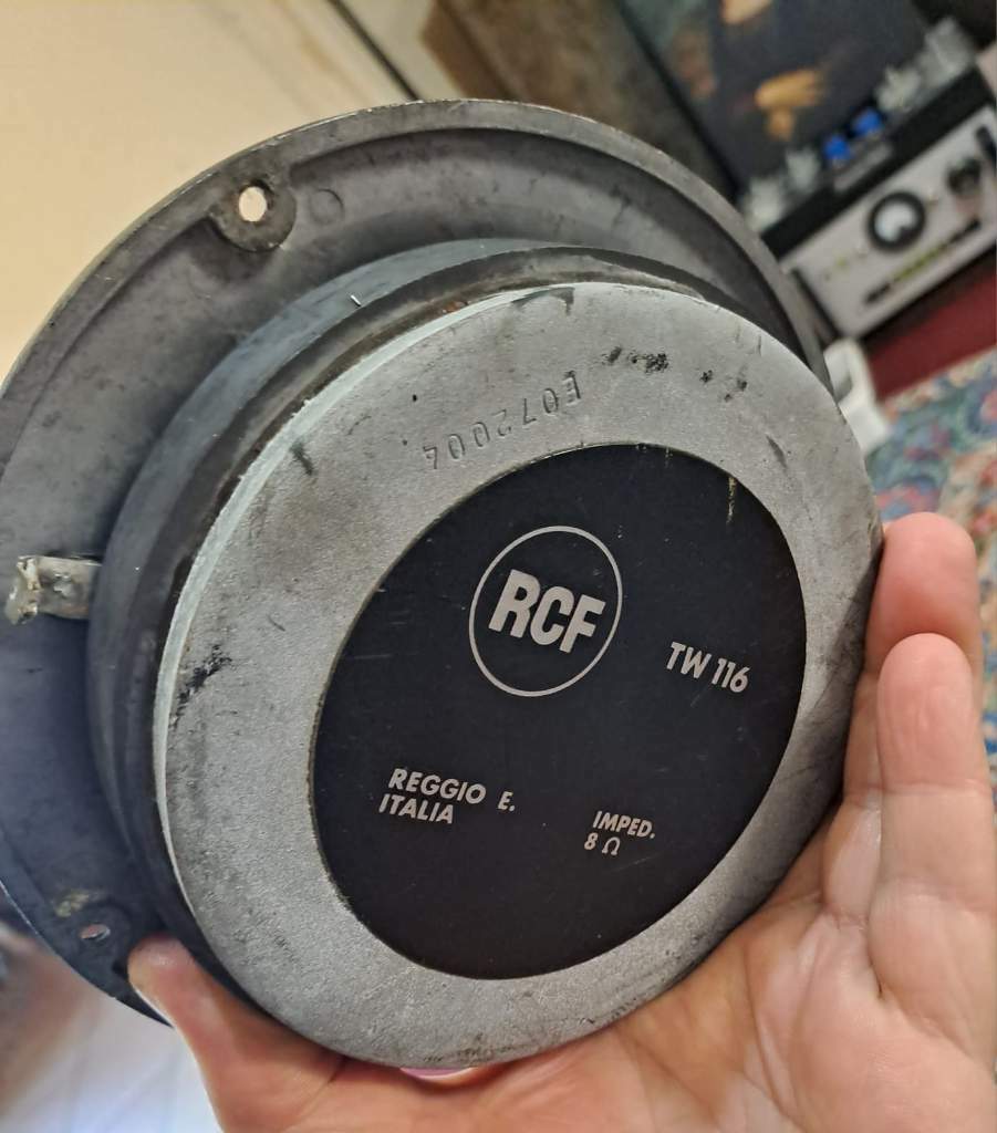 Ulmerino Inviato 7 ore fa Condividi Inviato 7 ore fa Tra ieri e oggi ho ritirato un grande stock di diffusori e altoparlanti sciolti Altec e Rcf, credo sia roba degli anni 60/70... tutta componentistica per il professionale...sono rimasto di stucco quando ho toccato con mano la qualità dei driver della storica azienda di Reggio Emilia...tanto da farmi credere che JBL e Altec siano un po' sopravvalutate, almeno per quanto riguarda la costruzione...ho iniziato a testare alcuni componenti (ce ne sono che hanno preso umidità) e dopo averli smontati e ripuliti, sono ripartiti alla grande...in particolare questi stupendi tweeteroni (gli spaccaorecchie) hanno un'impedenza di 8,12 e 8,15 ohm... Link al commento https://melius.club/topic/24938-rcf-dei-tempi-doro/page/5/#findComment-1734688 Condividi su altri siti Altre opzioni di condivisione...