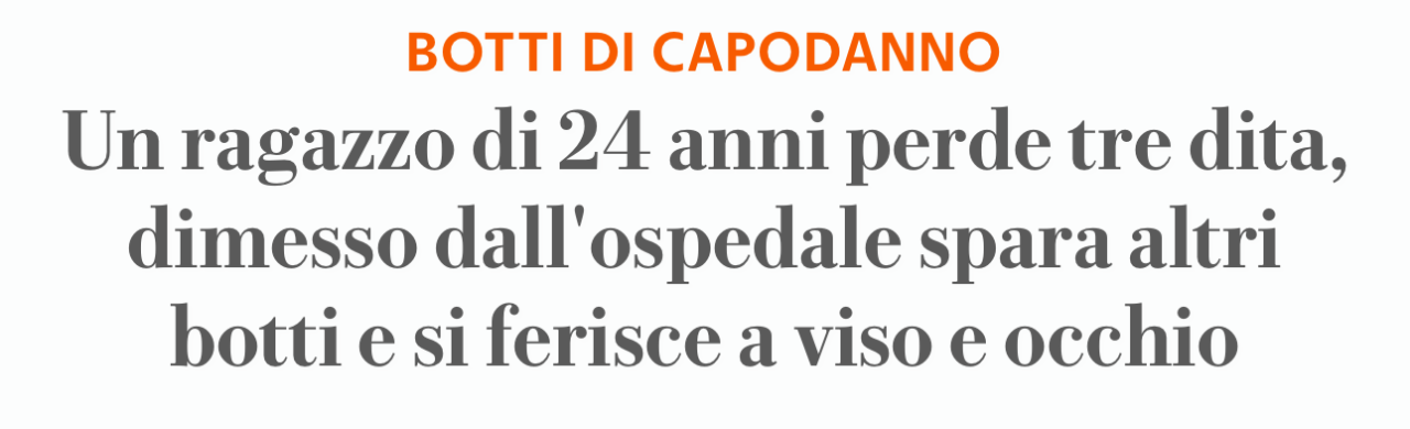 Gaspyd Inviato 1 Gennaio Condividi Inviato 1 Gennaio . Aveva scelto Napoli per trascorrere il Capodanno da turista. Per assaggiarne, probabilmente, il brivido più noto: quello di una notte senza freni, tra festeggiamenti estremi e botti che trasformano le strade in un campo di battaglia. Le campagne di dissuasione, gli appelli alla prudenza, le ordinanze: nulla ha funzionato per A. B., 24 anni, residente a Roma. «Volevo festeggiare come si fa solo a Napoli», avrebbe raccontato ai sanitari dell'ospedale Vecchio Pellegrini, nel cuore del centro storico, durante il primo dei due ricoveri che hanno segnato la sua notte di San Silvestro. Era arrivato al pronto soccorso con una mano sanguinante: l’esplosione di un grosso petardo gli aveva portato via tre dita. I medici lo avevano curato, medicato, dimesso. Una storia brutta, purtroppo simile a molte altre che si ripetono ogni anno, soprattutto nelle ore a cavallo della mezzanotte. Sembrava finita lì. Ma non lo era. Perché il 24enne, insieme agli amici, non sembrava disposto a rinunciare all’idea di vivere fino in fondo il Capodanno “più hard” della sua vita. Con una mano fasciata, ridotta a due dita, ha deciso di continuare a sparare. La seconda volta non si è trattato di un petardo, ma probabilmente di una batteria pirotecnica di quelle che si appoggiano a terra e si accendono con una miccia. Non è chiaro se ci sia stato un malfunzionamento o se il comportamento del giovane sia stato ancora una volta imprudente. Quel che è certo è l’esito. Un razzetto è partito dal fuoco d’artificio colpendolo in pieno volto. L’impatto è stato devastante. Il turista romano è stato accompagnato di nuovo al pronto soccorso dello stesso ospedale, questa volta in condizioni molto più gravi. Aveva un occhio fuori dall’orbita e diverse ferite al volto. È rimasto ricoverato. Una notte iniziata come una sfida al pericolo si è chiusa in corsia Link al commento https://melius.club/topic/26180-questo-pazzo-pazzo-mondo/page/15/#findComment-1665201 Condividi su altri siti Altre opzioni di condivisione...
