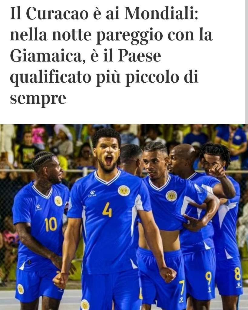 esoteria Inviato Giovedì alle 15:20 Inviato Giovedì alle 15:20 Il 19/11/2025 at 11:37, Supertramp ha scritto: Vi dico la sincera verità. Fino a pochi minuti fa non sapevo nemmeno dell'esistenza di questo posto (e della sua relativa squadra di calcio). Incredibile, una "nazione" che ha gli stessi abitanti di Bergamo, ovvio che siano stati avvantaggiati da un regolamento assurdo volto solo ad allargare la platea dei partecipanti, ma a chi volete che interessino le partite del Curacao?? Mentre l'Italia per schifo che possa fare porta come minimo 40 milioni di CT che seguirebbero le partite per la gioia degli sponsor, escluderla per 3 mondiali di seguito non mi pare una mossa intelligente andava studiata una formula diversa per blindare le nazionali storiche come ad esempio nel girone sudamericano dove il Brasile pur perdendone 6 è comunque qualificato. 1