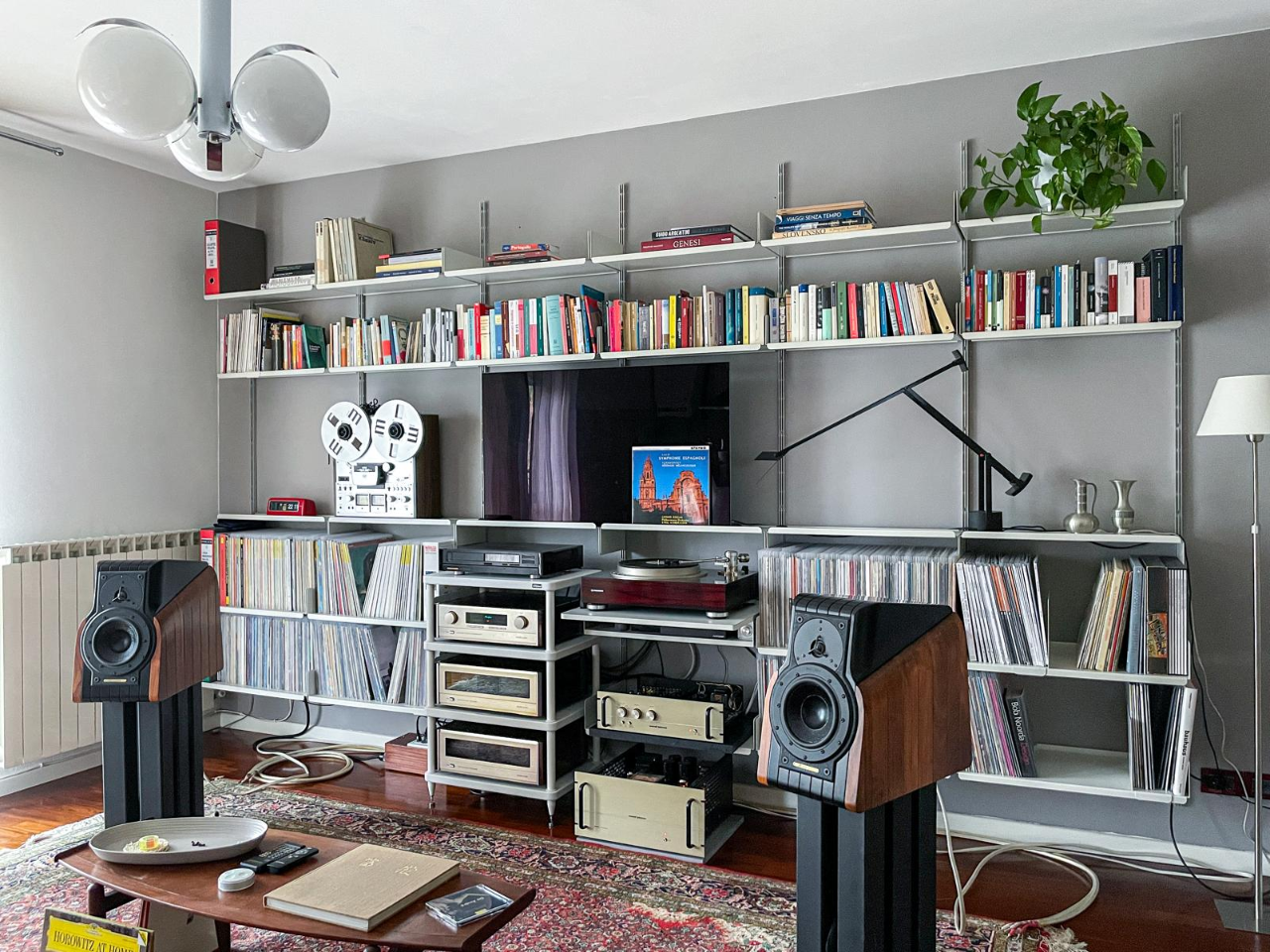 campaz Inviato 9 Settembre Inviato 9 Settembre Buongiorno a tutti! Sto ristrutturando casa e quindi mi appresto a scegliere il mobilio per la parete sulla quale saranno ospitati libri, qualche modellino, il tv 55 pollici, l’impianto stereo (una coppia di Indiana Line Diva 262, un amplificatore Rotel A11, un Wiim Ultra). Per trent’anni mi sono affidato alla Billy di Ikea (tre case, tre Billy): economica e soprattutto ampiamente configurabile. Adesso vorrei cambiare, ma senza spendere moltissimo (ho appena acquistato sette metri di cucina Lube…). L’idea di fondo è quella della leggerezza, mi sono disfatto di tutti i supporti discografici e, per quanto riguarda i libri, fino adesso ne ho esclusi due su tre (ma sono ancora ampiamente sopra i 1000, devo ancora scremare). Le dimensioni della parete sono 450 cm in larghezza, 320 cm in altezza. Il budget sui 5000 euro… (se meno non mi offendo). A livello di risorse, abito in provincia di Roma, vi viene in mente qualcosa? Anche sul web, qualche produttore / modello di riferimento… lo spazio audio / video sarebbe il più importante. Grazie a chi mi darà un consiglio.