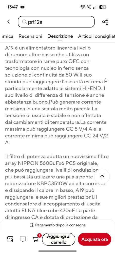 keres Inviato 8 Ottobre Autore Inviato 8 Ottobre L'alimentatore a lifepo4 e' andato, sembra non tenere più così bene i 12v con il k13. Fortunatamente ieri mi è arrivato l'alimentatore cinese e va molto bene, secondo me migliore di quello con lifepo4 a batteria, ci sono molti alimentatori lineari su AliExpress, se quello che ho preso io è migliore o peggiore di altri non lo so, comunque ne sono molto soddisfatto. Testato il k13 in modalità ldac e direi che se non avessi saputo che stavo ascoltando in Bluetooth non me ne sarei accorto. La mia impressione è che il k13 vada meglio dopo qualche giorno di burn in. 1 1