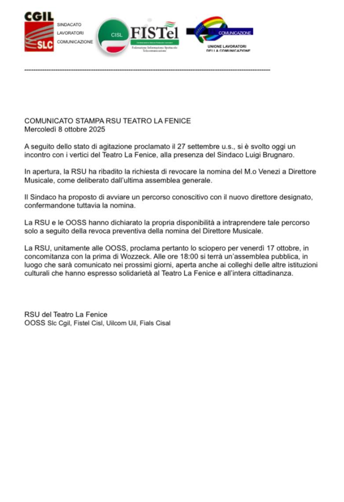 OTREBLA Inviato 8 Ottobre Condividi Inviato 8 Ottobre Ma porca miseria, qui mi salta il cenone (e le lenticchie)! . https://www.ilfattoquotidiano.it/in-edicola/articoli/2025/10/08/fenice-scontro-frontale-sulla-nomina-di-beatrice-venezi-sciopero-il-17-ottobre-e-protesta-fino-a-capodanno/8153945/ . Ecco, i soliti comunisti senzadio che se la prendono persino col povero San Silvestro! Alberto. Link al commento https://melius.club/topic/26628-mi-sforzo-ma-non-so-che-titolo-dare-alla-discussione-ammesso-che-ce-ne-possa-essere-una/page/11/#findComment-1609362 Condividi su altri siti Altre opzioni di condivisione...