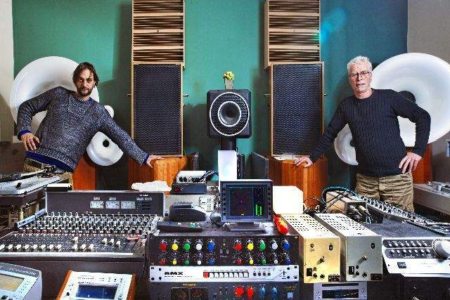 C'è un Dj creatore di suoni che ha un studio con trombe eccetera .