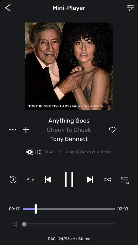 giorgiocana82 Inviato 14 Maggio 2022 Inviato 14 Maggio 2022 Il pomeriggio prosegue con questo bellissimo disco di duetti tra Tony Bennett e Lady Gaga Mac - Qobuz via Audirvāna - Cambridge Audio CXN - Marantz pm14s1se - Lake People g111 - Sennheiser hd 660s