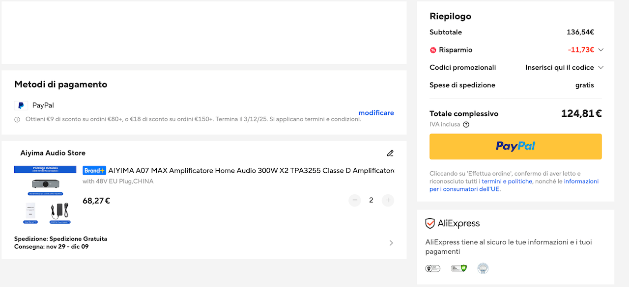 Amedeo.R. Inviato Sabato alle 18:01 Inviato Sabato alle 18:01 grazie per la segnalazione, non conoscevo l'Aiyima a07 max, ne ho presi due da usare in mono con alimentatore da 48V 5A, monta lo stesso chip Texas Instrument e gli stessi op-amp del Fosi, probabilmente ha qualcosa di meno a livello di componentistica, ma la differenza di prezzo è rilevante, inoltre per 125 euro impossibile trovare due finali mono. Dalle recensioni, sembra essere vicinissimo come valori al Fosi V3 mono (probabilmente condivide anche il layout principale del pcb con il fosi), quindi perchè non provarlo?
