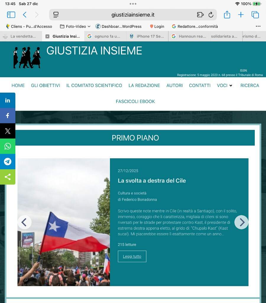 Roberto M Inviato 27 Dicembre 2025 Condividi Inviato 27 Dicembre 2025 1 minuto fa, extermination ha scritto: Dipenderà anche da chi scrive l’articolo ..oppure intendi farne “ ideologicamente “ di tutto un fascio? Dipende dalla rivista. le riviste giuridiche serie sono a pagamento e non hanno connotazioni ideologiche. Non scrivono sulla svolta a destra del Cile, e non mettono nella loro descrizione termini come “insieme”. Insieme de che ? 1 Link al commento https://melius.club/topic/27810-la-vendetta-contro-la-corte-dei-conti/page/2/#findComment-1662073 Condividi su altri siti Altre opzioni di condivisione...