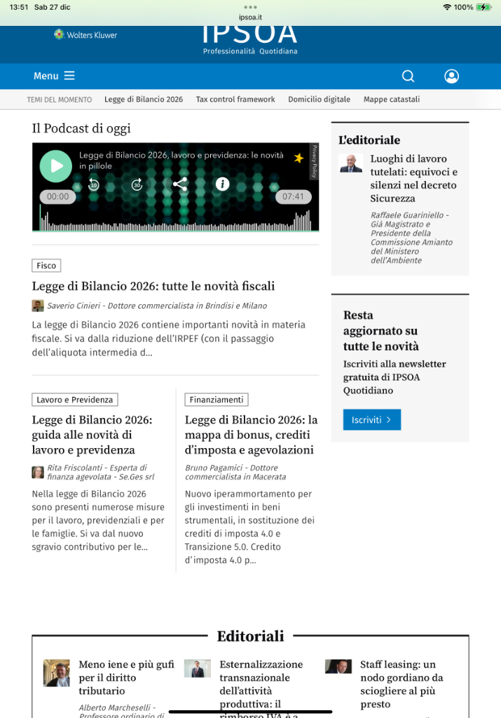 Roberto M Inviato 27 Dicembre 2025 Condividi Inviato 27 Dicembre 2025 Questo quello che appare nelle Home Page riviste che trattano in maniera seria gli aspetti giuridici e fiscali. Link al commento https://melius.club/topic/27810-la-vendetta-contro-la-corte-dei-conti/page/2/#findComment-1662070 Condividi su altri siti Altre opzioni di condivisione...