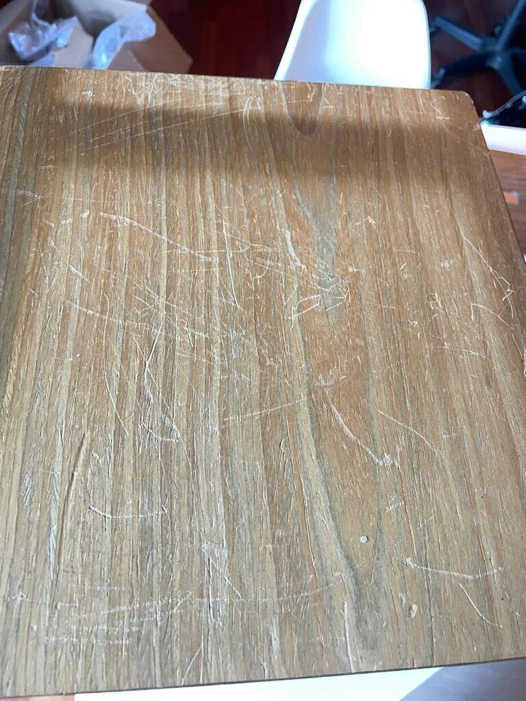 Concordo sui suggerimenti di pulire con acqua e sapone poi passare l'olio, ma visti i graffi io carteggerei e poi passerei olio con lana d'acciaio 0000 per finire con rimozione di eccessi con panno in cotone.