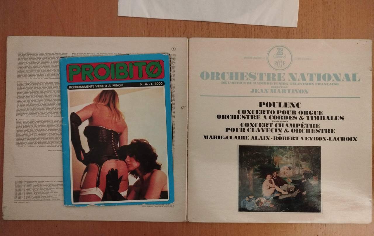 Questo è un messaggio popolare. analogico_09 Inviato Martedì alle 14:05 Questo è un messaggio popolare. Condividi Inviato Martedì alle 14:05 1 ora fa, mozarteum ha scritto: Ma senza volare cosi’ alto, c’era il mitico “Le Ore” che trovavamo di straforo in qualche casa di vecchi zii sotto i cuscini del divano Molti anni fa acquistai usato un gatefold di cui alla foto che nella parte cieca della doppia cover celava un pornazzo che mi lasciò stupito... Insomma, faticavo ad immaginare che un fine ascoltatore dedito alle musiche di Puolenc fosse interessato quel genere di guida all'ascolto... 😂 Bisogna però ammettere che quel nascondiglio fosse davvero a prova di moglie. Lo lascio dove si trova, con una nota scritta nella confero la mia estraneità ai fatti... Un domani spero molto lontano quando i miei tesori dicografici, librari ed altra oggettistica cinematografica finirianno dispersi da qualche parte (in famiglia mi dicono che nulla uscirebbe dalla nostra casa) chissà se il giovane che eventualmente ritrovasse disco e guida sarebbe in grado di apprezzare l'oggetto rappresentativo dei valori estetici, se non esattamente morali, dei tempi che furono, e, soprattutto, se saprà riconoscere, apprezzare il valore delle musiche nel disco riportato. (ho fotografo solo la copertina della "guida" meramte riassuntiva dei ben più approfonditi e vistosi argomenti delle pagine interne...) 1 3 Link al commento https://melius.club/topic/27929-proteggersi-dalla-%E2%80%9Cmodernita%E2%80%9D/page/5/#findComment-1669610 Condividi su altri siti Altre opzioni di condivisione...