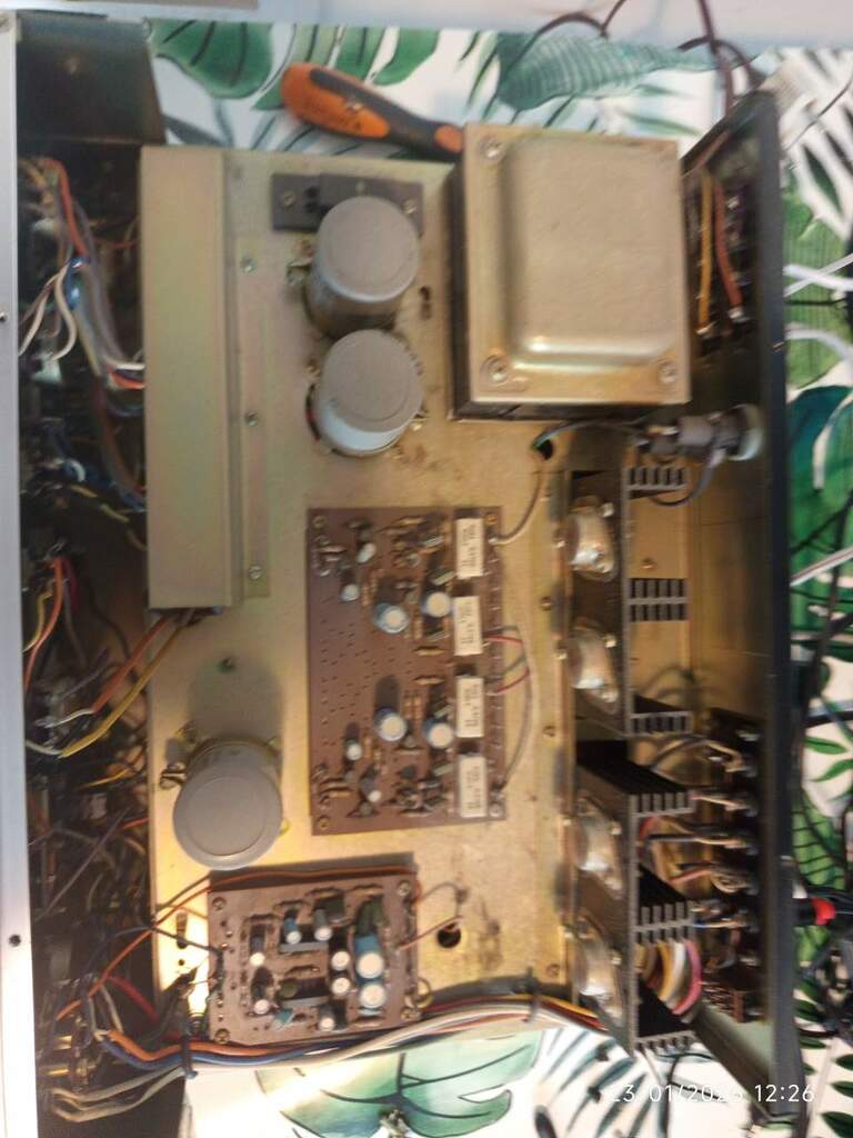 checilascialozampino Inviato Venerdì alle 18:19 Autore Condividi Inviato Venerdì alle 18:19 Il 21/1/2026 at 08:44, Jonas Rainer ha scritto: Provalo e facci sapere Oggi sono riuscito ad avere un micro tempo per provarlo.. purtroppo funziona solo un canale, sia nel pre che nel finale temo, ma per i finali non ci ho messo l'attenzione dovuta, e vado un po' a memoria.. I potenziometri mi sembrano abbastanza in ordine. Sono riuscito a fare una foto dentro. il canale che ho sentito cmq mi ha soddisfatto! Un suono pieno e caldo. Ho fatto una foto dell'interno.. Grazie intanto Jonas Rainer delle indicazioni.. Purtroppo mi sa che ha bisogno di un bravo medico.. Mi sembrano almeno quelli in foto transistor al germanio, è esatto? Anche gli altri? Qualcuno conosce un tecnico in zona Romagna che ci si possa mettere per sistemarlo? Questo per me è il Vintage, e me ne sono già affezzionato! Link al commento https://melius.club/topic/28105-emerson-ea-4000/#findComment-1682083 Condividi su altri siti Altre opzioni di condivisione...
