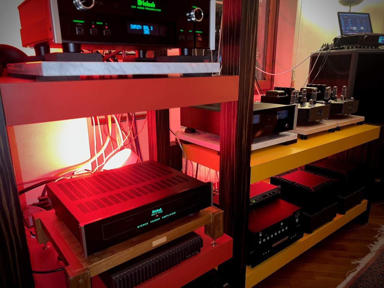 wiking Inviato Domenica alle 09:57 Autore Condividi Inviato Domenica alle 09:57 Pubblico questa foto per replicare indirettamente a @zagor333 in tema Mr78 (si vede uno dei miei primi esemplari di Mr78, credo di averne avuti almeno tre), e ne approfitto per tornare in tema Mc serie 7xxx. Ho più volte citato uno dei fratelli dell Mc7100, l' Mc7150 che rappresentò la mia porta di ingresso nel mondo McIntosh. Dotato di autoformers, il 7150 sfoggiava un suono meraviglioso, armonioso, vellutato, ma fu sufficiente un confronto con un amico che entrò in casa con un integratone Onkio (non chiedetemi il modello, non ho mai avuto un Onkyo, era un apparecchio fine anni '90 credo) per capire quanto il 7150 fosse in affanno anche con le TDL RTL-4 che all'epoca avevo in sala. Intendiamoci, l'Onkyo non possedeva né la grazia né la classe musicale del 7150. Era plasticoso, come tutti gli apprecchi consumer anni '80-'90, brutto come la morte, ma come capacità di pilotaggio lo asfaltava. Qui si vede uno dei miei set-up in sala, siamo ad inizio millennio, con due JBL 4333A, spostabili per gli ascolti "veri", e sopra appoggiati due monitor JBL da palco per l'audio-video. In basso a destra si vede l'Mc-7150, destinato a biamplificare le vie alte delle 4333A. Il crossover elettronico AmAudio AS 205 è sopra l'Mx-130, mentre il finale deputato al pilotaggio diretto dei due coni da 38 era un vecchio Mc2205, la cui grana un po'...ehm...spessa, era viceversa percepibile. La sezione finale dell'Mc7150 la montava anche l'integrato Ma-6850, col quale pilotai viceversa senza problemi, anzi con grande soddisfazione, delle Electrovoice Regency anni '60 a tromba (intendo che anche il woofer da 38 era caricato a tromba), con le quali riuscii a staccare due piastrelle dell'adiacente bagno. Ecco, andando a memoria, ritengo la sezione finale del 7150 più eufonica e più gradevole timbricamente di quella del 7100 (il che non vuol dire più corretta ), ma in ogni caso meno universale proprio a causa della sua più limitata capacità di pilotaggio. Tuttavia il 7150 (e l'erede Mc150) sono finali che, dovessero mai capitarvi a tiro ad un prezzo decente, vi consiglio di prendere al volo: con volumi di ascolto contenuti e soprattutto con diffusori adatti, hanno certamente il loro perchè (e questo spiega le loro quotazioni , che sono già da tempo, ahimè, elevate). Finali apprezzati e difficilmente trovabili, anche in virtù dei loro non elevati numeri di produzione. 1 Link al commento https://melius.club/topic/28258-il-piccolo-finale-mc-7100-1992-1997-cenerentola-o-sleeper/#findComment-1688412 Condividi su altri siti Altre opzioni di condivisione...