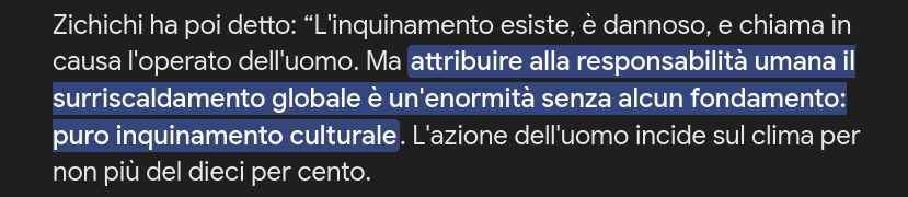 Pier Angelo Inviato 10 Febbraio Condividi Inviato 10 Febbraio Diciamo che ha fatto più di una brutta figura, ultima le firme rubate per sostenere la sua tesi contro il cambiamento climatico. Tanto che è stato coniato il termine "zichicche" per le sue uscite temerarie. Link al commento https://melius.club/topic/28376-addio-ad-antonino-zichichi/#findComment-1695120 Condividi su altri siti Altre opzioni di condivisione...
