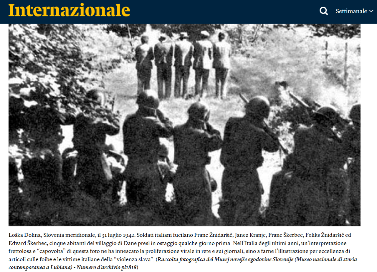 appecundria Inviato 11 Febbraio Condividi Inviato 11 Febbraio 2 ore fa, Partizan ha scritto: quali sono le tue fonti? Come ha giustamente ricordato @Panurge fino agli anni '90 (circa) quella foto era data per rappresentante militari jugoslavi che fucilano civili italiani. Faceva parte delle prove a sostegno della tesi "E allora le foibe?". Poi è venuta a galla la verità, peraltro evidente dalle divise. Quindi, l'ottimo @robem è evidentemente rimasto alla prima attribuzione, fatta in epoca Almirante. 1 Link al commento https://melius.club/topic/28382-giorno-del-ricordo-2026/page/2/#findComment-1695695 Condividi su altri siti Altre opzioni di condivisione...