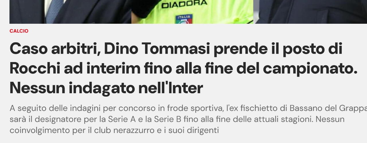 E come mai si cita l'Inter e di questa riunione in in segreto a San Siro tra rocchi e altri personaggi non ancora identificati Amio avviso sono 2 filoni distinti,quello relativo  al settore arbitrale,e quello relativo a fantomatici favoritismi a una società in un paio di partite, peraltro perse.