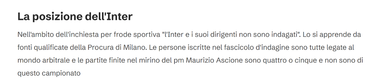 - conclusioni mie: i fatti sembrano reali e hanno alta probabilità di esserlo. Meno evidente è la fattispecie di reato di frode sportiva, abbastanza sicuro l'abuso di ufficio.