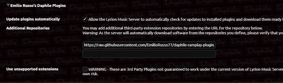 Questo è un messaggio popolare. leon77 Inviato Sabato alle 13:12 Questo è un messaggio popolare. Condividi Inviato Sabato alle 13:12 Ho sviluppato un plugin per Daphile per caricare sempre in Ram a prescindere dal player, quindi anche con Ipeng, aggiungere questo repo : https://raw.githubusercontent.com/EmilioRusso77/daphile-ramplay-plugin/main/DaphileRamPlay/repo.xml ps: ancora in fase di testing. 1 3 Link al commento https://melius.club/topic/50-configurazione-migliore-per-daphile/page/159/#findComment-1713735 Condividi su altri siti Altre opzioni di condivisione...