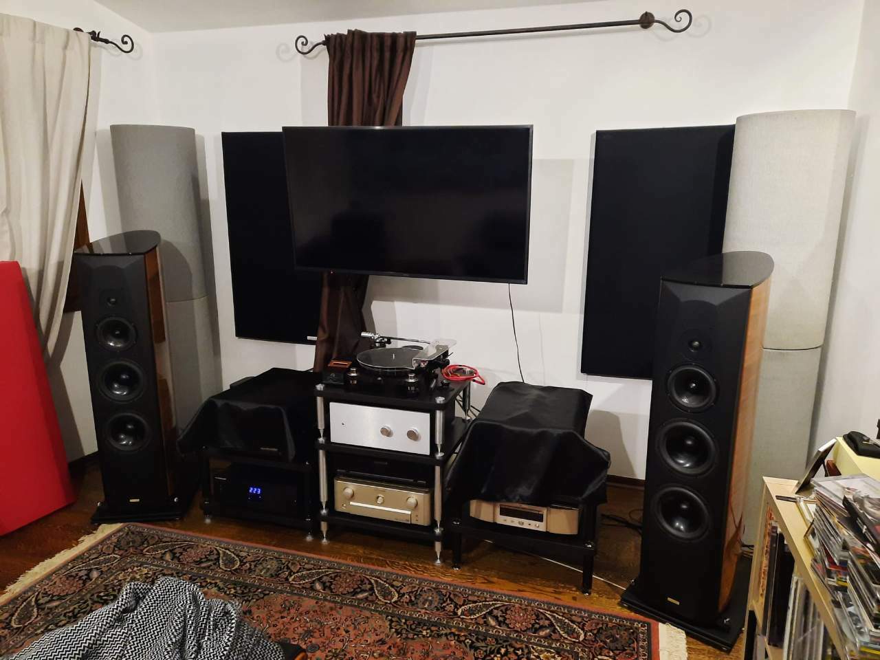 acam75 Inviato 11 Dicembre 2021 Inviato 11 Dicembre 2021 @ernesto.62 ..buongiorno Ernesto, anche io ho una piccola stanza, non sono un esperto di trattamenti acustici, diciamo che mi sono "arrangiato" con i consigli di forumer più esperti e ad orecchio...fossi in te proverei ad "assorbire" un po la parete dietro i diffusori, io ho utilizzato una tenda, copre lo schermo della tv quando ascolto l'impianto e per focalizzare la scena utilizzo un pannello fonoassorbente in verticale rimovibile che aiuta molto....anche le pareti laterali le ho trattate con pannelli per assorbire mentre la parete posteriore ho sia pannelli fonoassorbenti che diffondenti...il consiglio è comunque quello di provare, il trattamento aiuta molto ma ogni stanza è storia a sé... Cordialmente Andrea