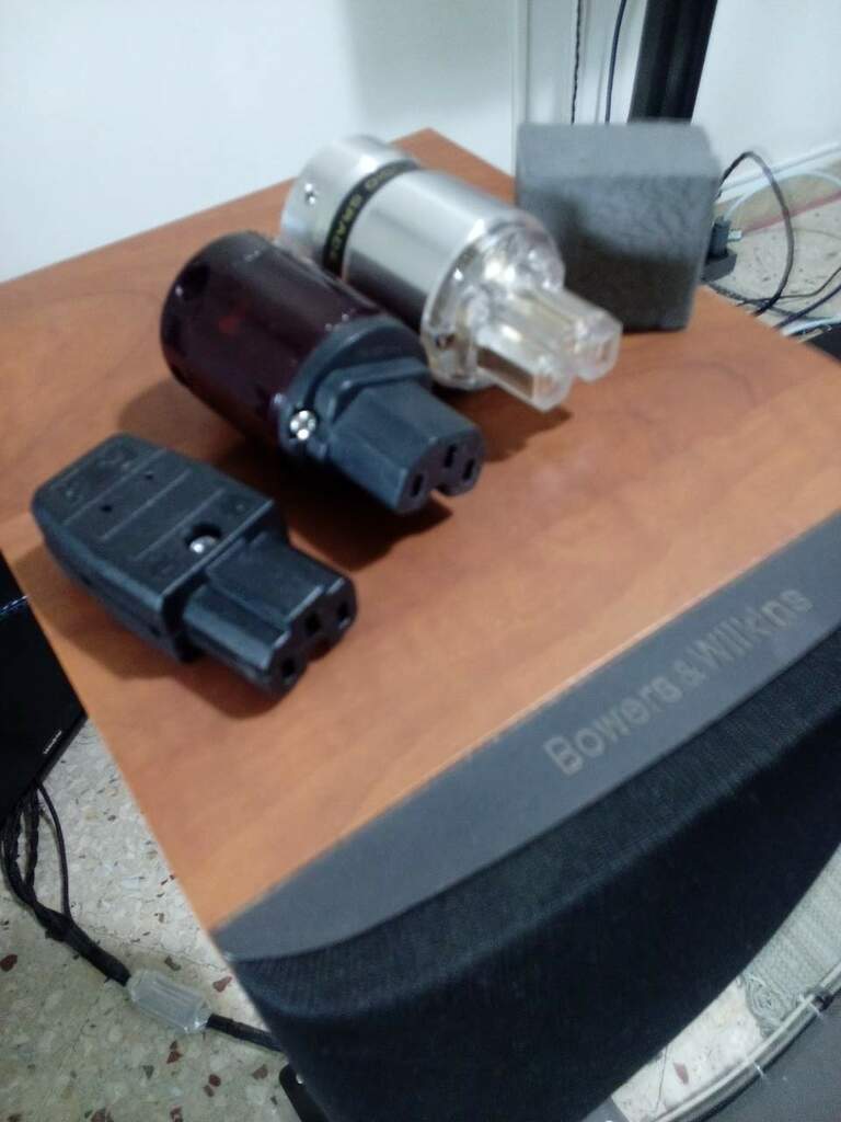 ernesto62 Inviato 24 Luglio 2023 Inviato 24 Luglio 2023 @CJPV10 Tieni conto che pure con le IEC messo in foto nei commenti sopra sono senza cavo ma hanno lo stesso gioco lasco anche se a dire la verità ognuno di queste un po' diverse, alcune di più.... altre più accettabili. Guardate questa foto . Nel lettore CD ho messo la IEC Viborg che era nella multipresa e che ha lasciato il posto alla 06. Ebbene la IEC del cavo che va sul lettore CD è una Furutech FI 28. Saldissima qui , ma meno sulla 06 che ho provato . Nella Viborg Ferma come una roccia . A questo punto 2+2 fa 4. La differenza sta tutta nelle IEC maschio. Mentre la Viborg da 10 euro è eccellente sotto l'aspetto presa e saldezza meccanica , la 06 è una ciofeca , e costa 6 volte di più.