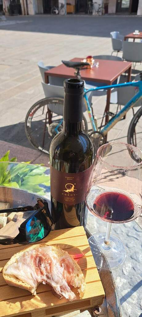 Un interessante Cabernet Sauvignon della Goriska Brda [Collio Sloveno] dalle mie amiche della 'Anteprima' in piazza a San Vito al Tagliamento - e ottimi crostini con la porchetta e coppa pepata.